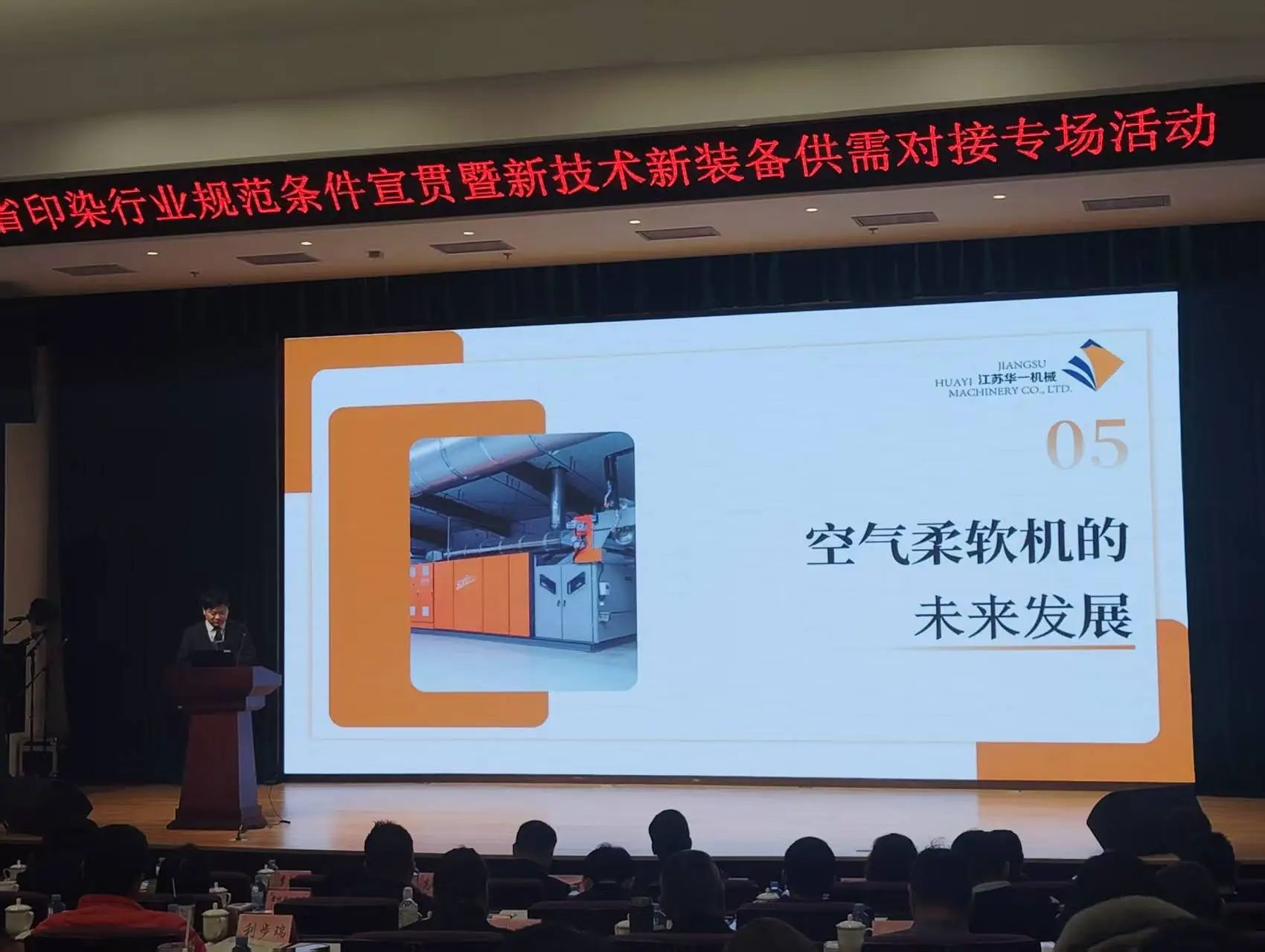 På mødet diskuterede Fan Jun, formand for Huayi, begrænsningerne af nuværende blødgøringsapplikationer, principperne, procesegenskaberne og anvendelsesområderne for luftblødgørere, såvel som fremtidige udviklinger, og de nye tendenser i den grønne og intelligente udvikling af industrien med mere end 120 trykkeri- og farvningsvirksomheder og ligestillede i provinsen.